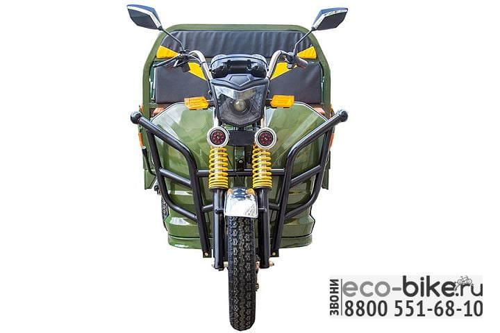 Эту модель можно оснастить комплектом аккумуляторов емкостью 32Ah,45Ah, или двумя комплектами 32Ah, который полностью зарядятся за 6-8 часов. После полной зарядки на электротележке можно проехать до 80 км. Двигатель на 1000W позволяет трициклу развивать скорость до 45 км/ч. Пройти неровные участки пути поможет надежная гидравлическая амортизационная система. А, благодаря пониженной передаче, транспорт сможет проехать по бездорожью и вовремя доставить груз в нужное место.